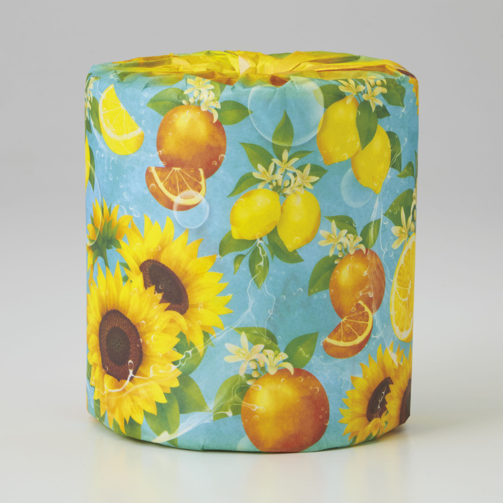 レモンやオレンジ、ひまわりをあしらった爽やかな夏デザインのトイレットペーパーです。 ビタミンカラーで明るい印象を与え、店舗の雰囲気づくりや来店促進に効果的。 携帯ショップの来店特典やイベント配布、キャンペーン景品など幅広く活用いただけます。